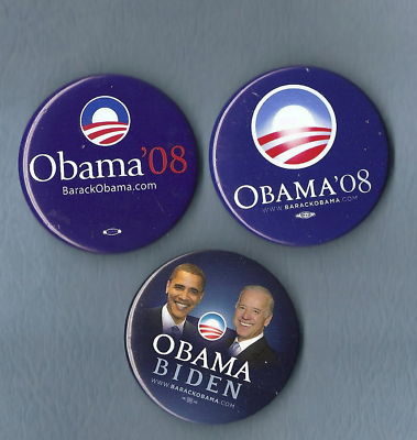 Title (ebay affiliate link): 3- Obama Campaign Buttons Pins pinbacks -Originals 2008