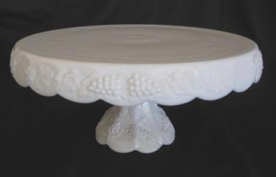 VINTAGE PEDESTAL CAKE STAND MILK GLASS GRAPE PATTERN