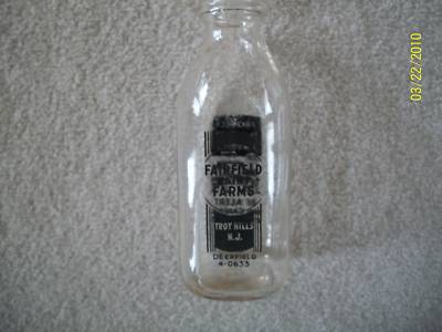 VINTAGE MILK BOTTLE GLASS TROY HILLS NJ FAIRFIELD FARMS