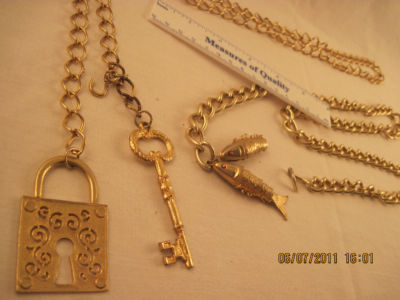 vintage MOD CHAIN BELTS lot of 2 FISH (nr) LOCK & KEY