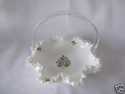 Fenton Milk Glass Silver Crest Basket Hand Paint Flower