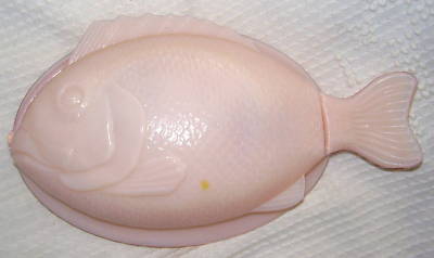 Vintage Pink Opalescent Milk Glass FISH Covered Dish ~~