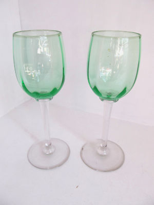 Title (ebay affiliate link): FINE PAIR VINTAGE GREEN DEPRESSION GLASS WINE GLASSES