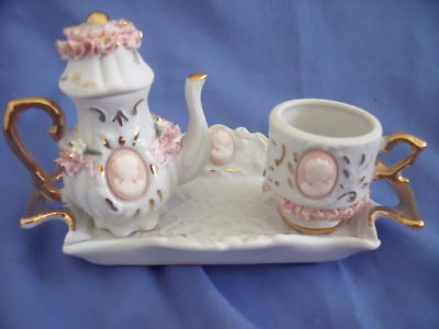 CAPODIMONTE DECORATIVE TRAY-TEAPOT- CUP -WITH CAMEOS
