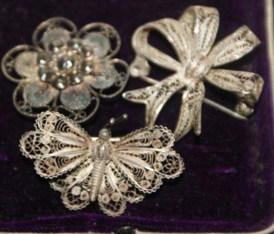 Title (ebay affiliate link): Sterling Filigree Figural Brooch Lot Antique Lot of 3