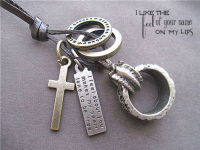 Title (ebay affiliate link): Men Fashion Leather Necklace Antique Ring Multi Pendant