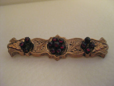 L Antique Victorian Pinchbeck & Garnet Bar Pin