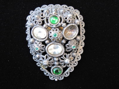 VINTAGE ANTIQUE GILT NE GLASS WORKS DRESS FUR CLIP