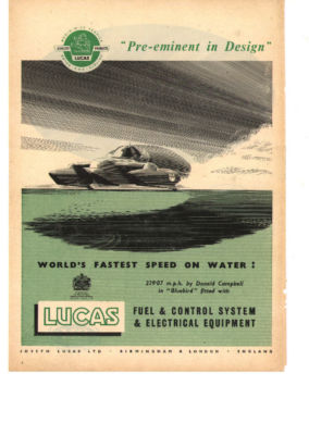 Title (ebay affiliate link): Donald Campbell speed record ad, by Lucas 1957