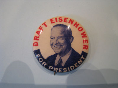 Draft IKE Eisenhower Political Campaign Button Pin