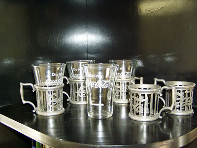 Title (ebay affiliate link): Vintage 70s Coca-Cola Glasses w/ Pewter Holders