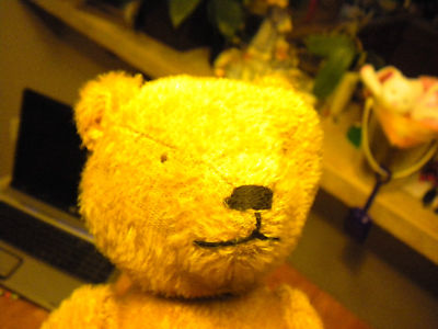 Antique mohair Yellow Teddy Bear 1920s no eyes but cute