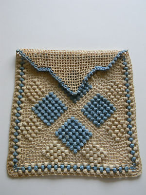 Antique Ecru Blue Crochet Filet DOLL COVERLET Blanket