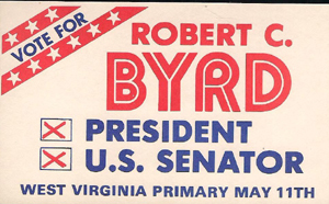 Title (ebay affiliate link): Robert Byrd for President / Senator West Virginia Card