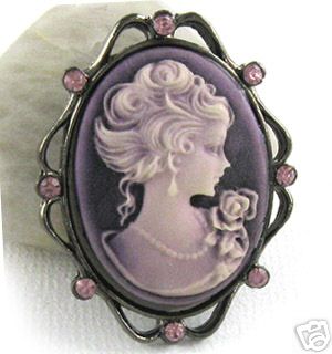 Title (ebay affiliate link): Antique Style Purple Cameo Crystal Lady Maid Pin Brooch
