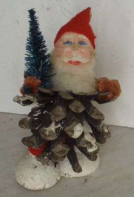 c1920s Paper Mache & Pine Cone Santa Claus Japan