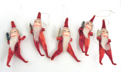Title (ebay affiliate link): Set of 5 Vintage CHENILLE Santa Ornaments Molded Faces