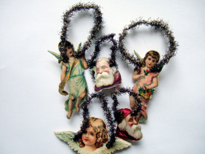 Title (ebay affiliate link): Victorian Die Cut Tinsel Angel Santa Christmas Ornament