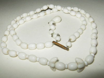 * 30's White Milk Glass Bead Necklace WESTERN GERMANY
