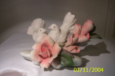 Title (ebay affiliate link): Capodimonte porcelain figurine w/2 love birds and roses