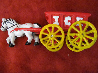 Vintage Cast Iron Horse Drawn ICE Cart Rare Wagon Toy