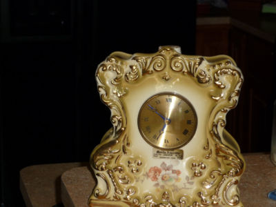 RARE MANTEL CLOCK BOTTLE DECANTER ANTIQUE PORCELAIN