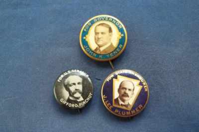 Title (ebay affiliate link): 3 Early 1900s Pennsylvania Photo Pins, Tener, Pinchot