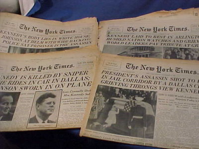 Title (ebay affiliate link): 4 Issues 1963 NY TIMES Newspapers DEATH OF JFK 11/23-26