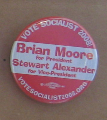Socialist Party campaign button pin 2008 Brian Moore #2
