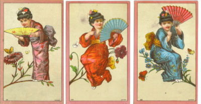 3 Advertising Trade Cards Girls w/t Fans Rockville, CT