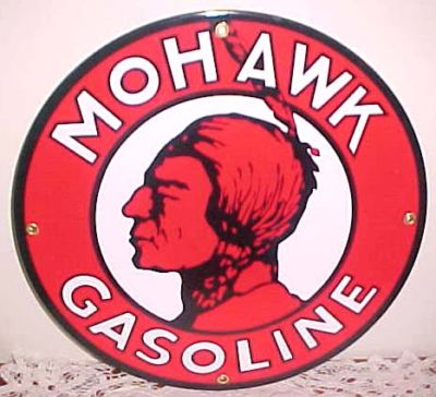MOHAWK GASOLINE GAS OIL PORCELAIN SIGN INDIAN LOGO