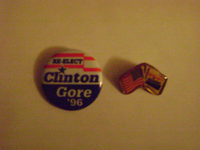 Clinton Gore campaign button and lapel pin