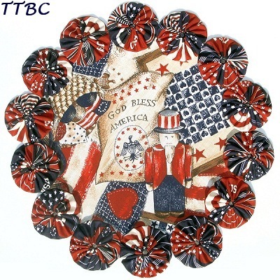 Title (ebay affiliate link): UNCLE SAM BLESS AMERICA Fabric YoYo Candle Mat Doily