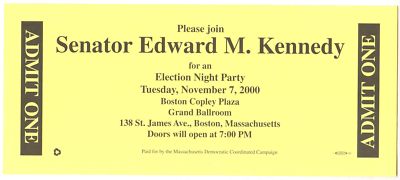 Title (ebay affiliate link): 2000 EDWARD TED KENNEDY Election Night Party Ticket