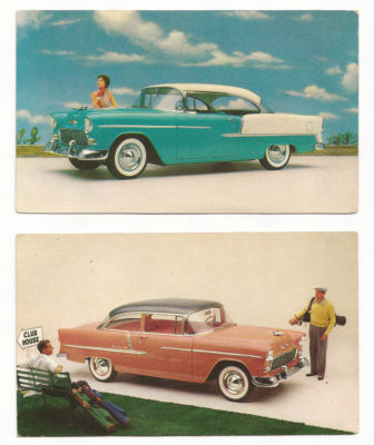 LOT OF 2 1955 CHEVY CHEVROLET BEL AIR ADV POST CARD