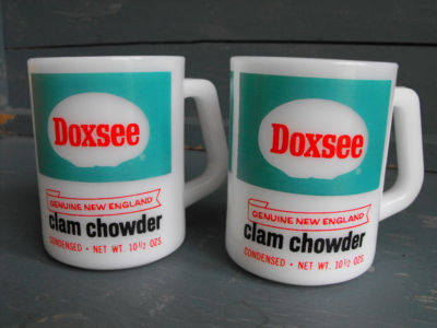 FEDERAL MILK GLASS DOXSEE CLAM CHOWDER ADVERTISING MUGS