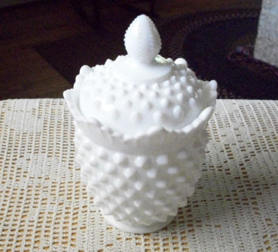 Vintage Fenton Hobnail Milk Glass Sugar Bowl w/Cover