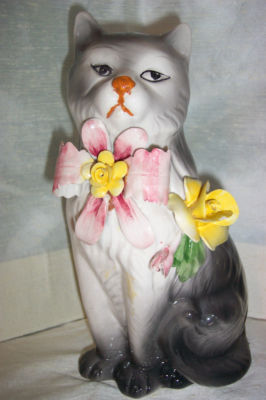 NUOVA CAPODIMONTE CAT WITH ROSES 9.5" TALL