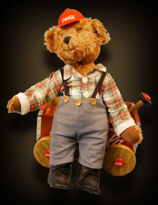 Title (ebay affiliate link): Coca-Cola Franklin Mint Teddy Bear & wooden wagon