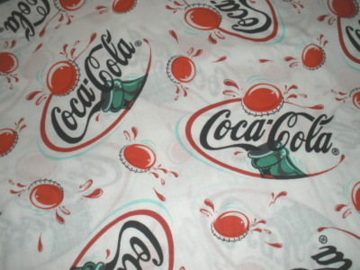 Title (ebay affiliate link): Coca Cola Coke soda pop logos 'Splash' cotton fabric