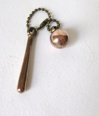 Vintage Copper Baseball & Bat Key Chain Charm NR