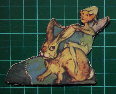 Rare Vintage Card Scenery tiny Elf and Hare Cutout