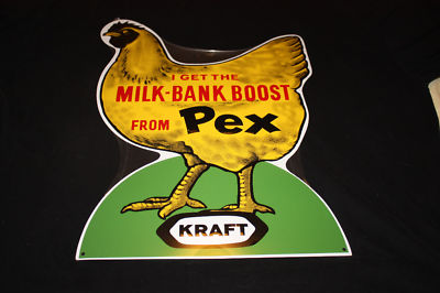 1960's Embossed Chicken Feed Sign-Kraft Pex Feed