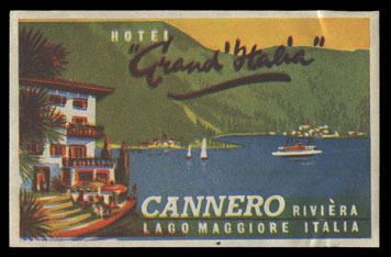 Hotel Grand Italia CANNERO Italy vintage luggage label