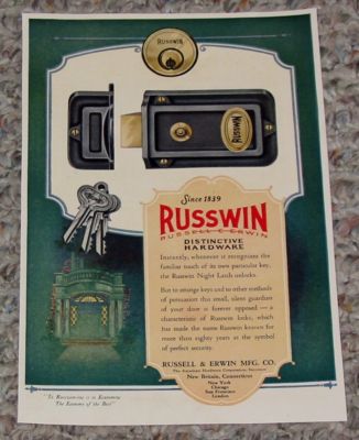 Vtg 1924 RUSSWIN LOCK New Britain CT. Ad COLOR