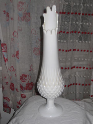 Vintage Fenton White Milk Glass Tall Hobnail Vase