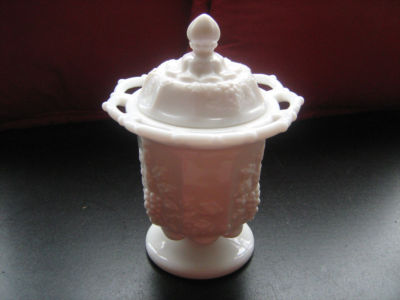 WESTMORELAND Milk Glass PANELED GRAPE Lidded Dish EXLNT