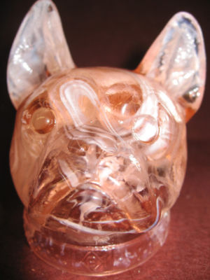 PINK MILK SLAG GLASS DOG CANDY CONTAINER BOSTON TERRIER