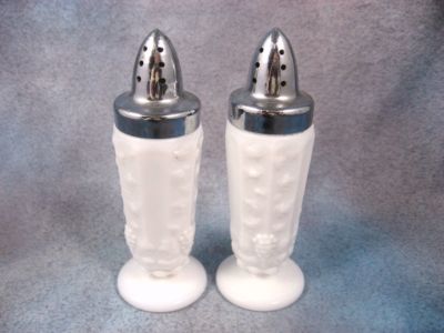 WESTMORELAND WHITE MILK GLASS SALT & PEPPER ~ GRAPE~