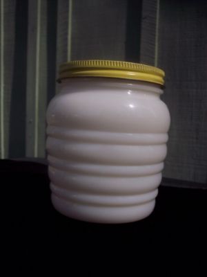 Vintage Opaque Milkglass Ribbed Glass Jar w Metal Lid